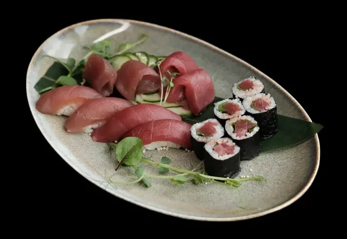 Wśród naszych flagowych składników znajduje się certyfikowany tuńczyk bluefin – perła oceanów, ceniona za delikatną teksturę, wyrazisty smak i szlachetny charakter – oraz łosoś MOWI, o wyjątkowej strukturze i wysokiej zawartości kwasów Omega-3. To produkty klasy premium, które stanowią fundament naszych wyrafinowanych kompozycji.